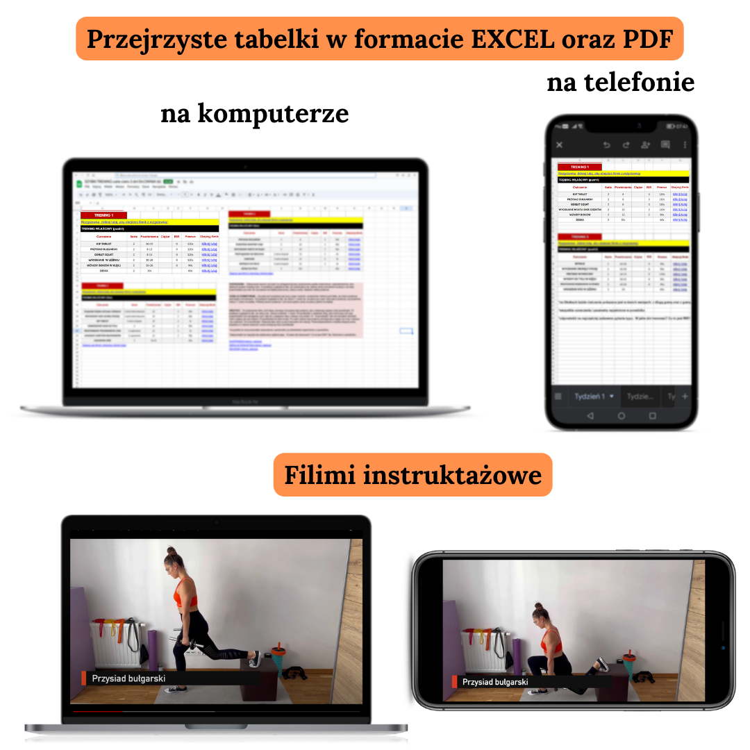 - W środku znajdziesz dokładną instrukcję jak korzystać z planu oraz 30 stron poradnika, aby wprowadzić Cię w świat treningu.