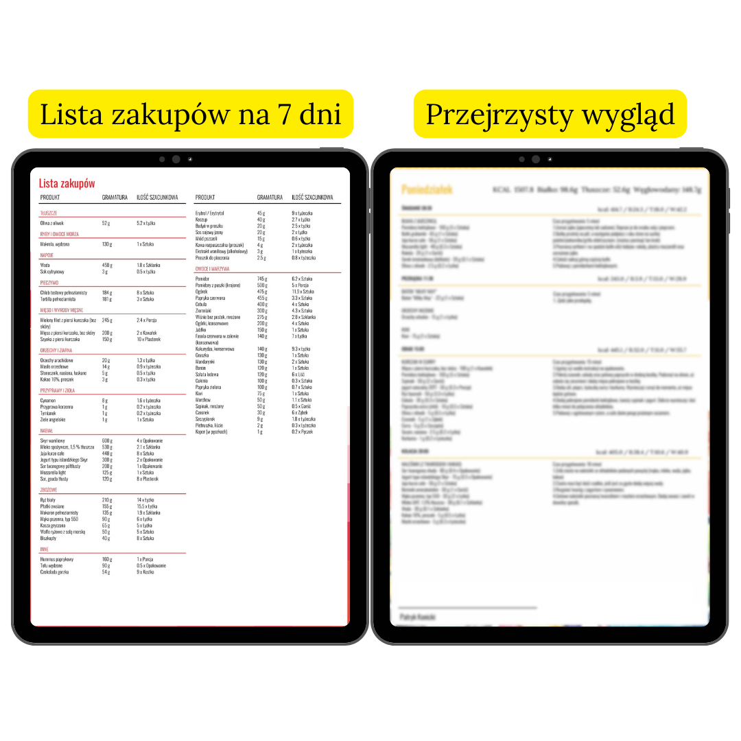 - Jadłospis, który składa się z 7 dni żywieniowych.
